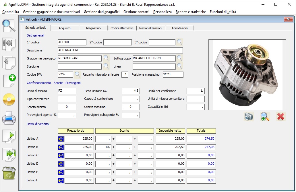 - Fornitori con possibilità di specifica condizioni commerciali particolari (sconti, provvigioni, ecc.) in base a gruppi merceologici o articoli specifici